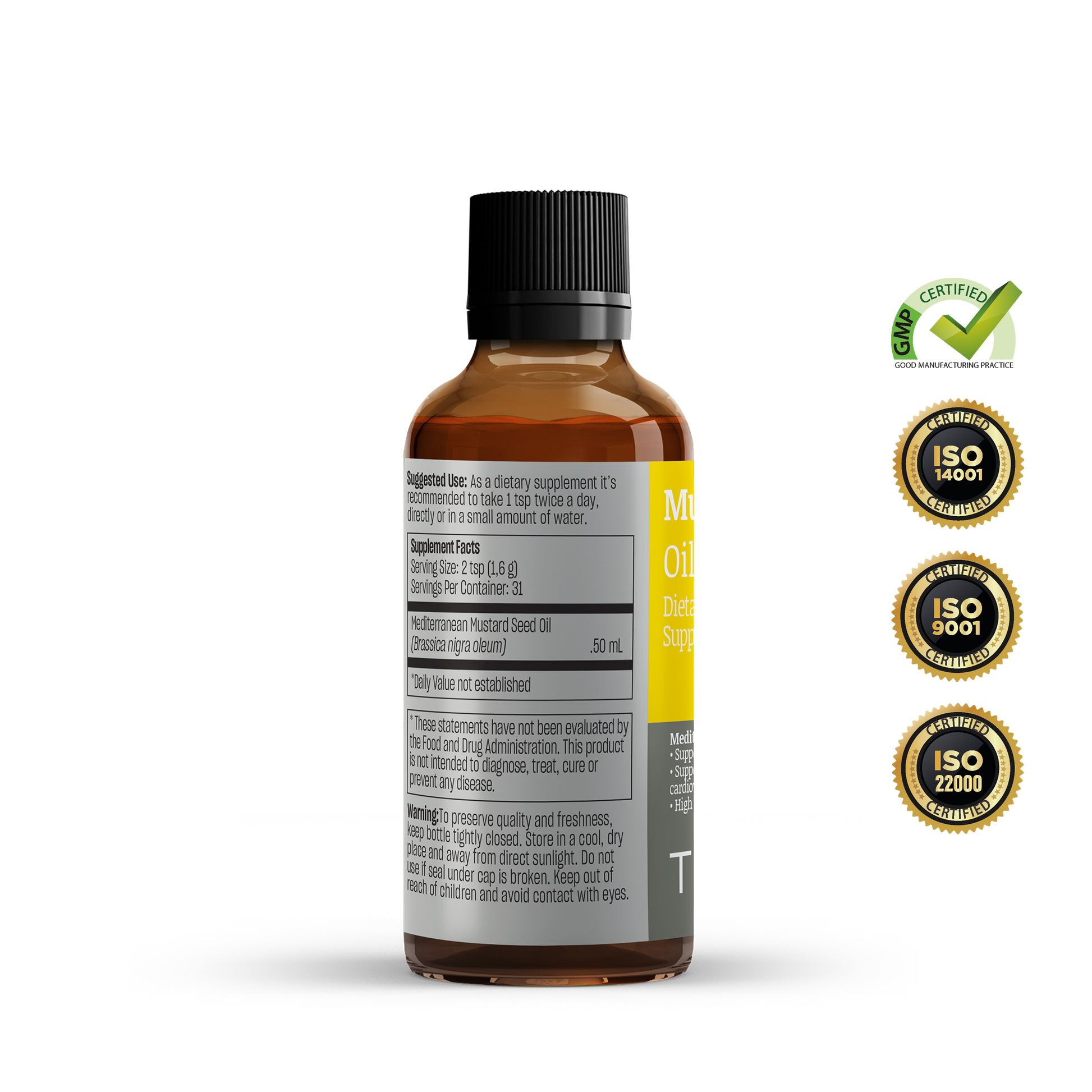 Mustard oil is rich in monounsaturated fatty acids, which could mean that it benefits cardiovascular health. It also contains a compound that could help support a healthy inflammatory system.*