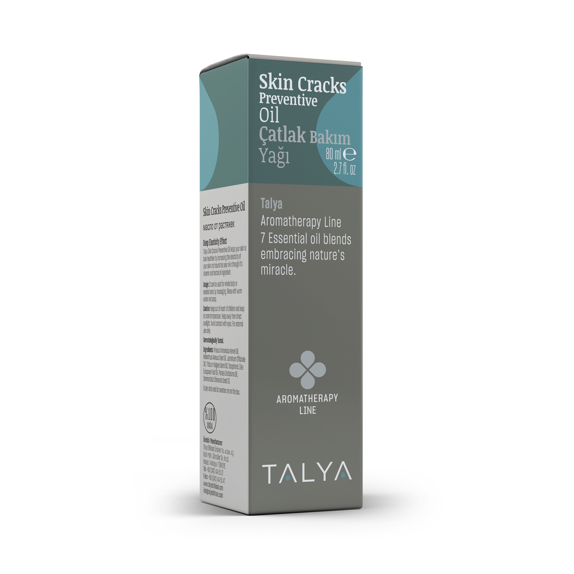 Talya Skin Cracks Preventive Oil has special combination of Apricot Seed Oil, Sunflower oil, Jasmine Oil, Wheat Germ Oil, Olive Oil, Avocado Oil, Jojoba Oil and Vitamin E . This perfectly blended oil helps nourishing your skin during pregnancy and postpartum.Promotes elasticity and ameliorate cracks associated wit